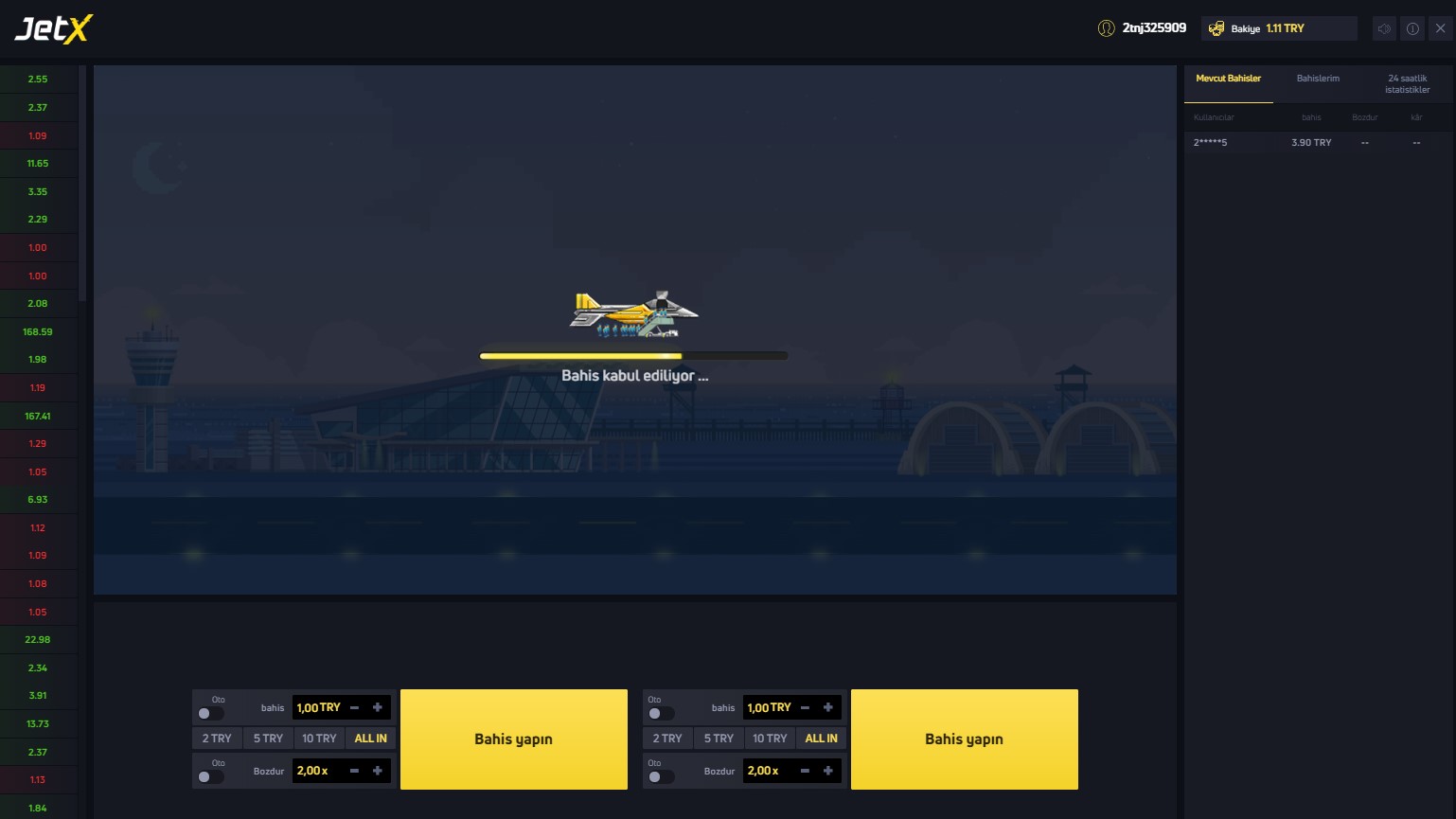 - Örnekle ; JetX bahis oyunu turunda 2 TL tutarında bahis aldınız ve jetX uçağı 1500 oranlara kadar yükseldi, siz bahsinizi jetX uçağı patlamadan bozdurursanız , kuponunuzu bozdurduğunuz andaki oran çarpanını hesabınıza eklenir. Yani Bahis miktarı nız 2 TL JetX bahis oranı kuponunuzu bozduğunuzda x1500 ise elde ettiğiniz kazanç = 3000 TL’dir.